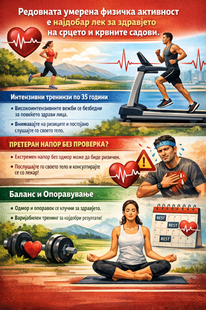 • Редовната умерена физичка активност е најдобар лек за здравјето на срцето и крвните садови.
